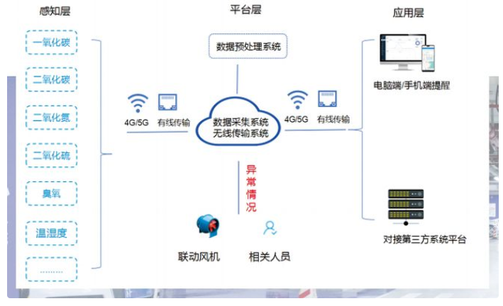 Building an intelligent environment monitoring and management system that integrates "environmental monitoring, remote alarm, device control, and intelligent monitoring service platform" can effectively ensure the safety of the garage environment. The system is based on various IoT communication technologies such as RS485, Ethernet, 4G, etc., and achieves centralized online monitoring of carbon monoxide concentration in different areas of the garage.