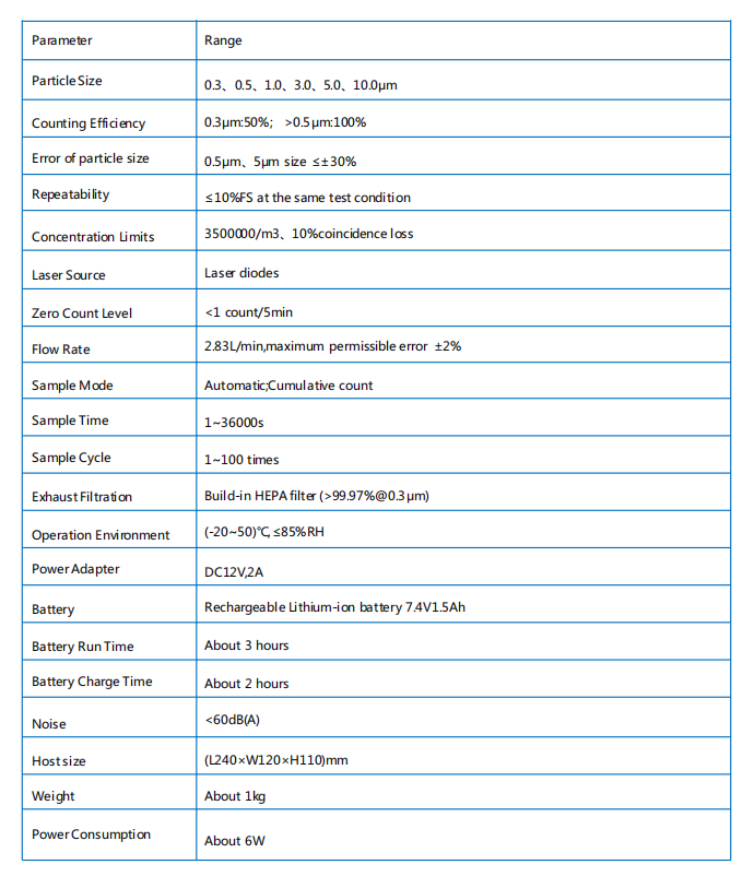 OSEN-1620 Particle Counter is 6 channels,built in HEPA fiter and Vacuum pump.The flowstable at 0.1CFM(2.83L/min).