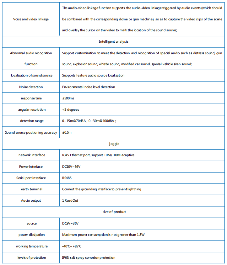 Using a multi-microphone stereo array structure, it can locate special audio or loud events in the 360 omnidirectional range, and coordinate the dome camera to rotate to the specified position and superimpose the cursor on the video recording, with a response time of less than 500ms.